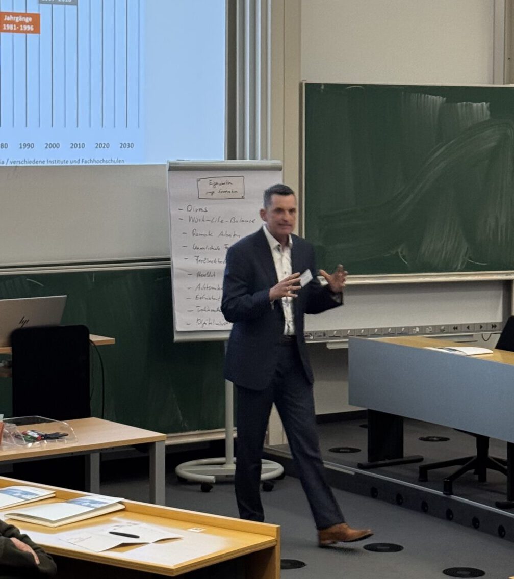 Im Rahmen einer gemeinsamen Veranstaltung mit der Hochschule der Bayerischen Wirtschaft (HDBW) beschäftigte sich Prof. Dr. Stefan Lackner mit der Frage, wie die nächste Generation die Arbeitswelt verändert und welche Rolle Bildung als zentraler Wettbewerbsfaktor für die bayerische Wirtschaft spielt. In seinem Impulsvortrag sowie der anschließenden Diskussion wurde deutlich, wie wichtig es ist, den Generationenwechsel aktiv zu gestalten und Bildung strategisch weiterzuentwickeln. Der Abend bot wertvolle Impulse und spannende Perspektiven für die Zukunft von Wirtschaft und Führung.